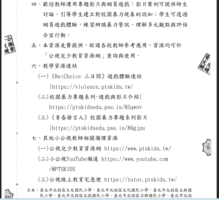 (二) | 校園暴力專題系列-遊戲與影片介紹| https://ptskidsedu.pse.is/85qwnv |