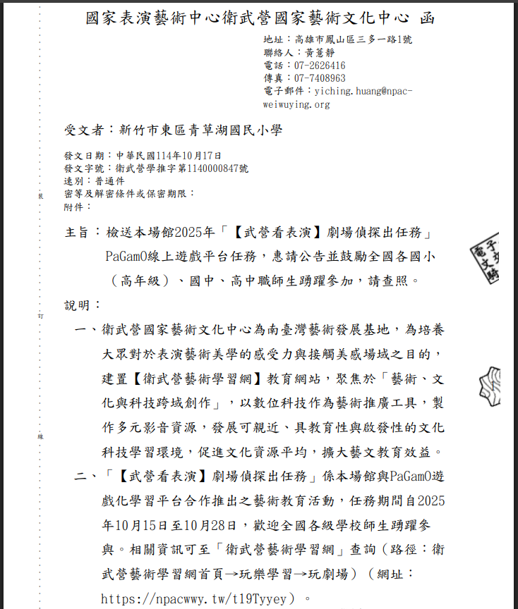 (路徑:衛武營藝術學習網首頁→玩樂學習→玩劇場)