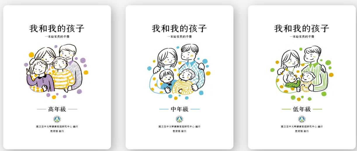 教育部家庭教育資源網重要資源,專為各階段孩子家長所準備的教養手冊,從各年段可能困擾家長的親職問題面著手,提供簡單易懂的說明,協助家長快速正確的學習親職知能與技巧。以下為電子書連結,鼓勵家長參閱。