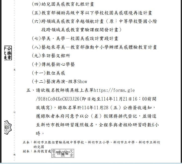 請欲報名教師填具線上表單https://forms.gle/918tCo94XeCKU3J26