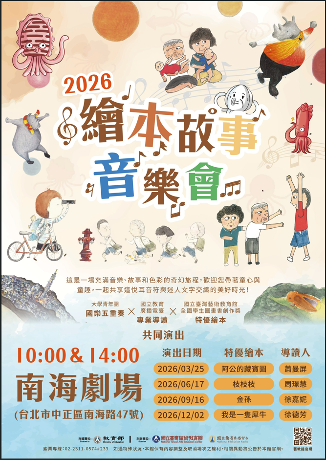 | 主旨: | 國立臺灣藝術教育館辦理「2026年繪本故事音樂會」,詳如說明,請查照。 |