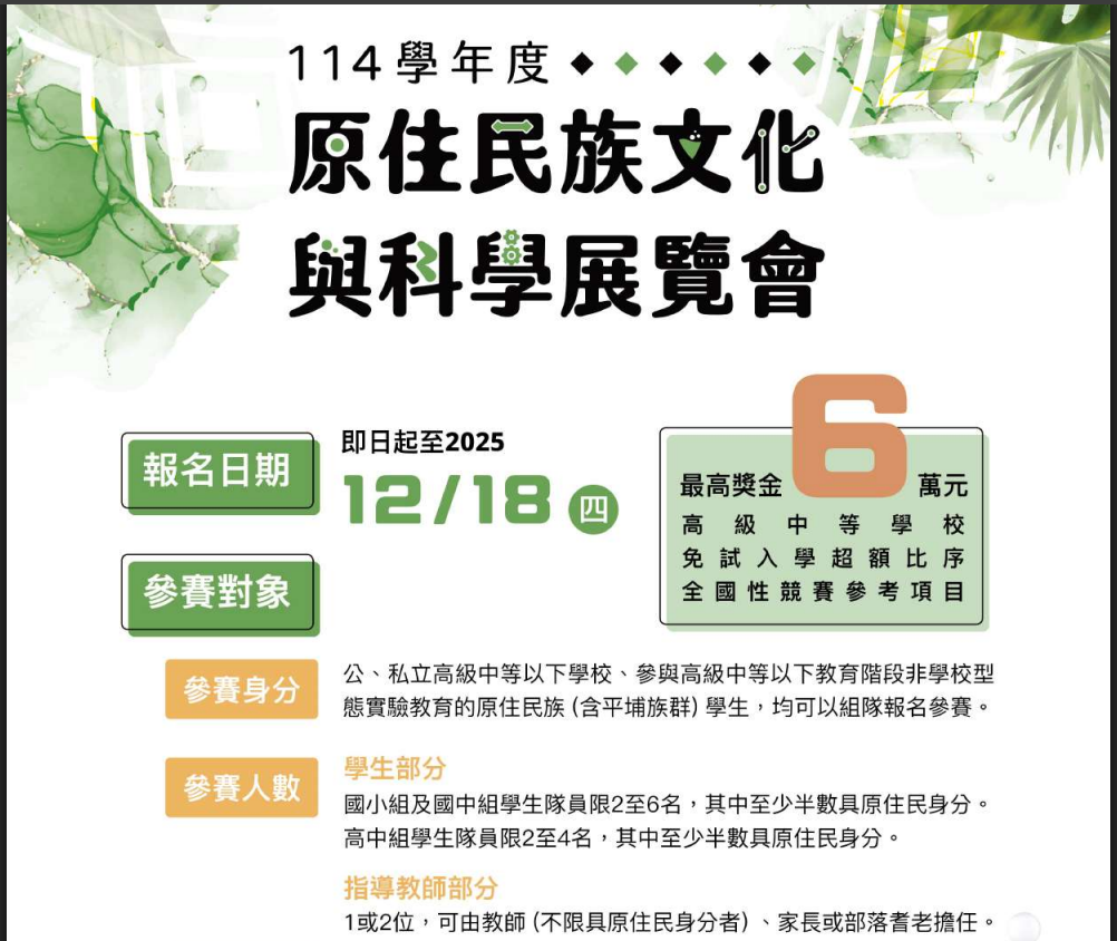 報名網址:https://ieiw.k12ea.gov.tw/ScienceFair/