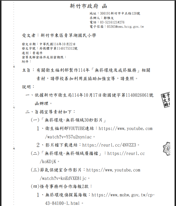 | 1、 | 衛生福利部YOUTUBE連結:https://www.youtube.com/watch?v=Y57u2nyniac。 |
