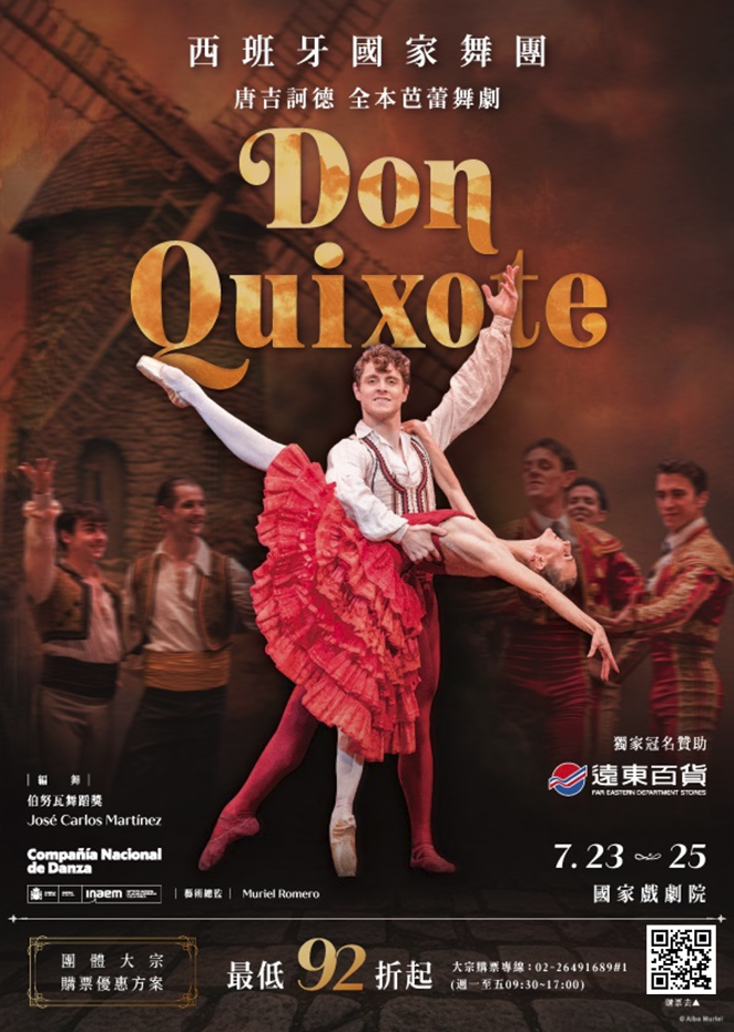 | (一) | 藝文活動為多元藝術的展現,為拓展台灣觀眾的藝文素養與舞蹈藝術之視野,本公司引進與《天鵝湖》並列為最受歡迎的古典芭蕾舞劇之一的《唐吉訶德》,由西班牙最具代表性的「西班牙國家舞團」全本演出。與多數偏向悲劇色彩的故事不同,《唐吉訶德》故事圍繞在唐吉訶德旅途上遇到的一對西班牙戀人的愛情故事,寫實與幻想場景交織出豐富的戲劇層次及充滿節慶的歡快氛圍,加上西班牙國家舞團特有的熱情澎派佛朗明哥風格,是一齣別開生面、熱鬧有趣的國家級芭蕾舞演出!在舞蹈技巧上,《唐吉訶德》也以炫技十足的舞蹈段落與濃厚戲劇張力聞名於世,包括經典大雙人舞中舞者需以高度默契完成連續高難度托舉、旋轉與跳躍,以及女主角獨舞中的「32鞭轉」更是對舞者平衡感、核心力量與心理專注度的極限考驗。誠摯推薦師生前來欣賞,感受既保有古典芭蕾嚴整的結構之美,也流露濃厚地域文化風情的芭蕾舞劇《唐吉訶德》。 |